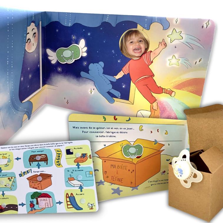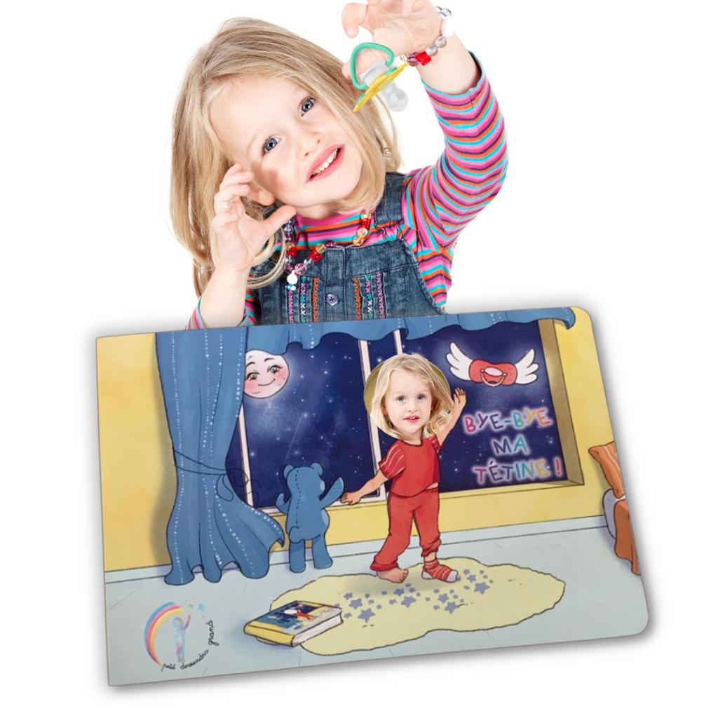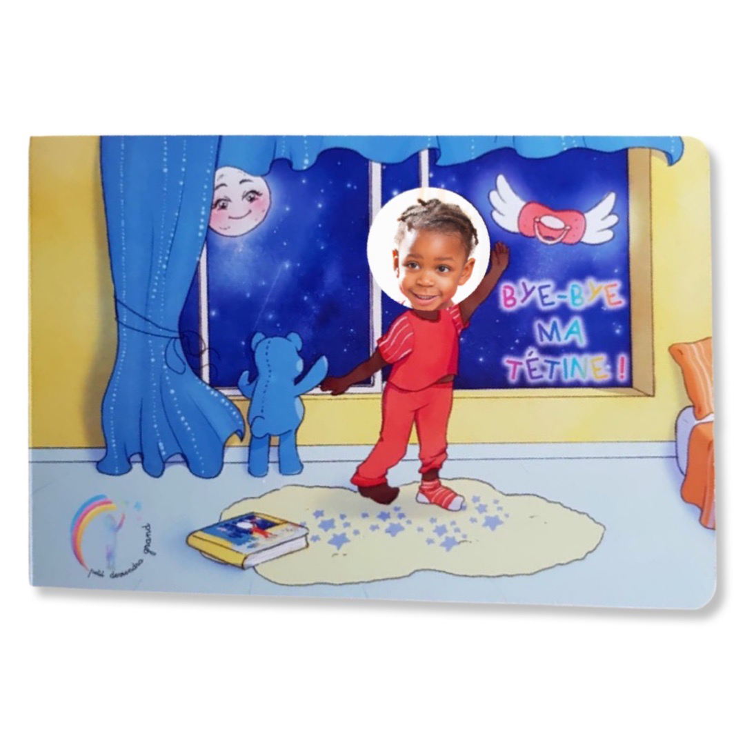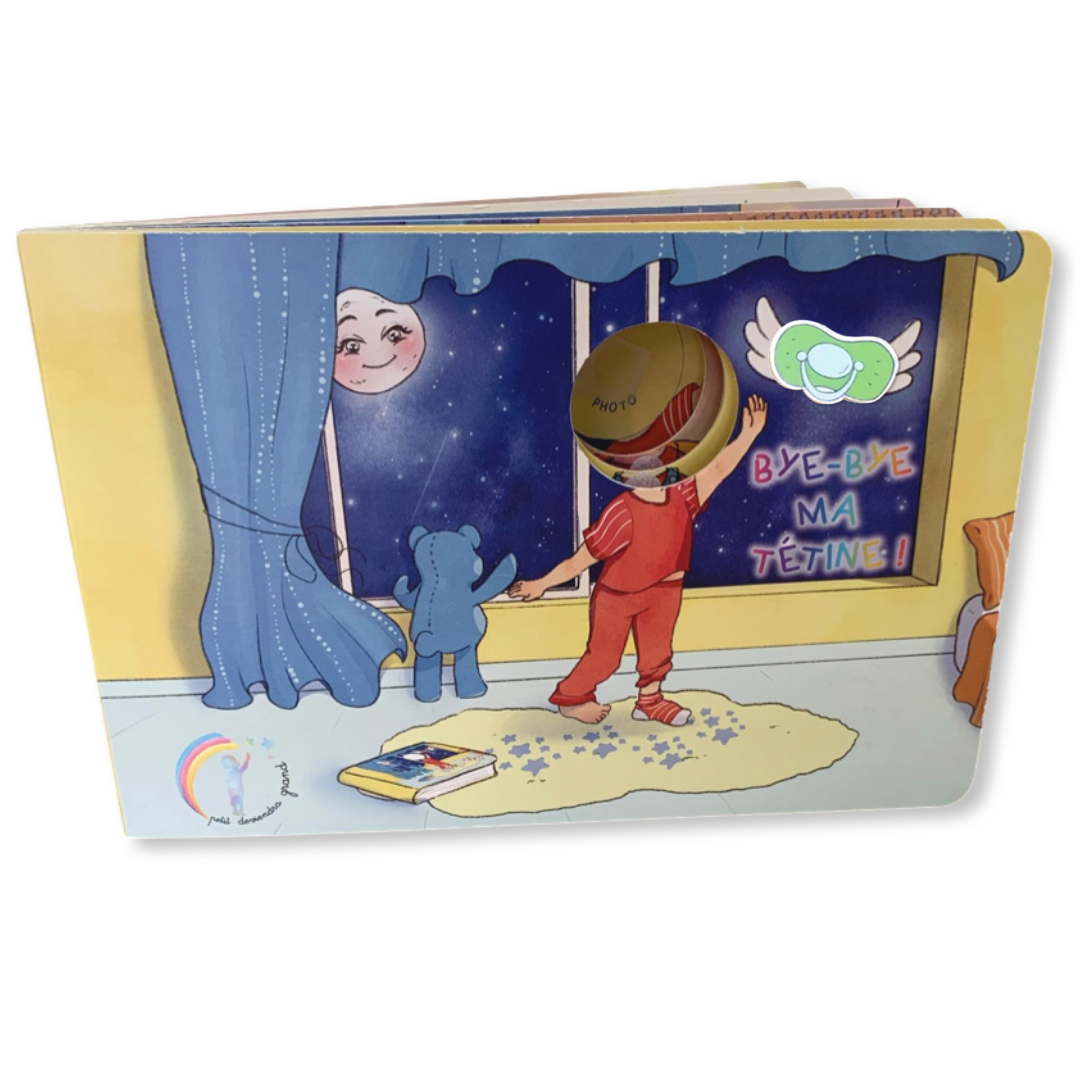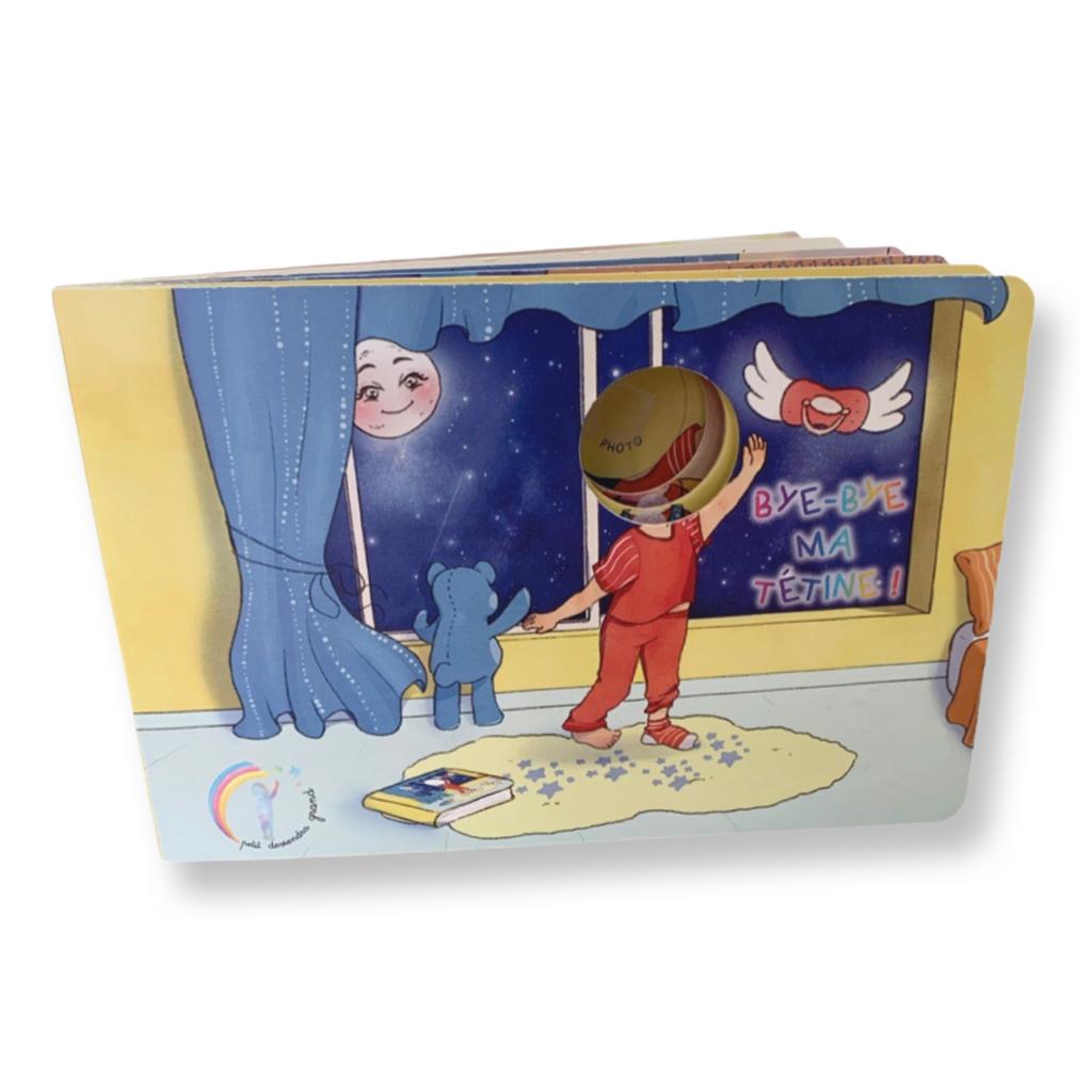 Bye-Bye ma tétine est un livre personnalisé et interactif, pensé pour accompagner les petits en douceur et par le jeu à se séparer de leur précieuse tétine !