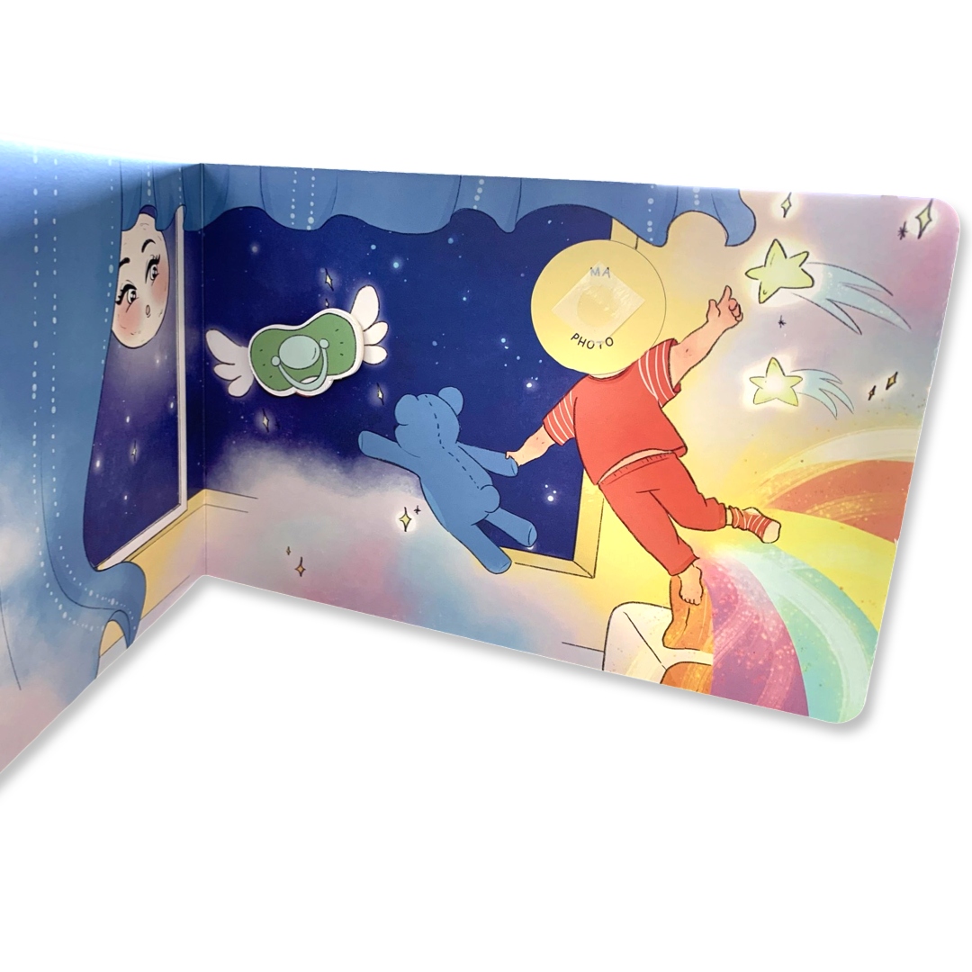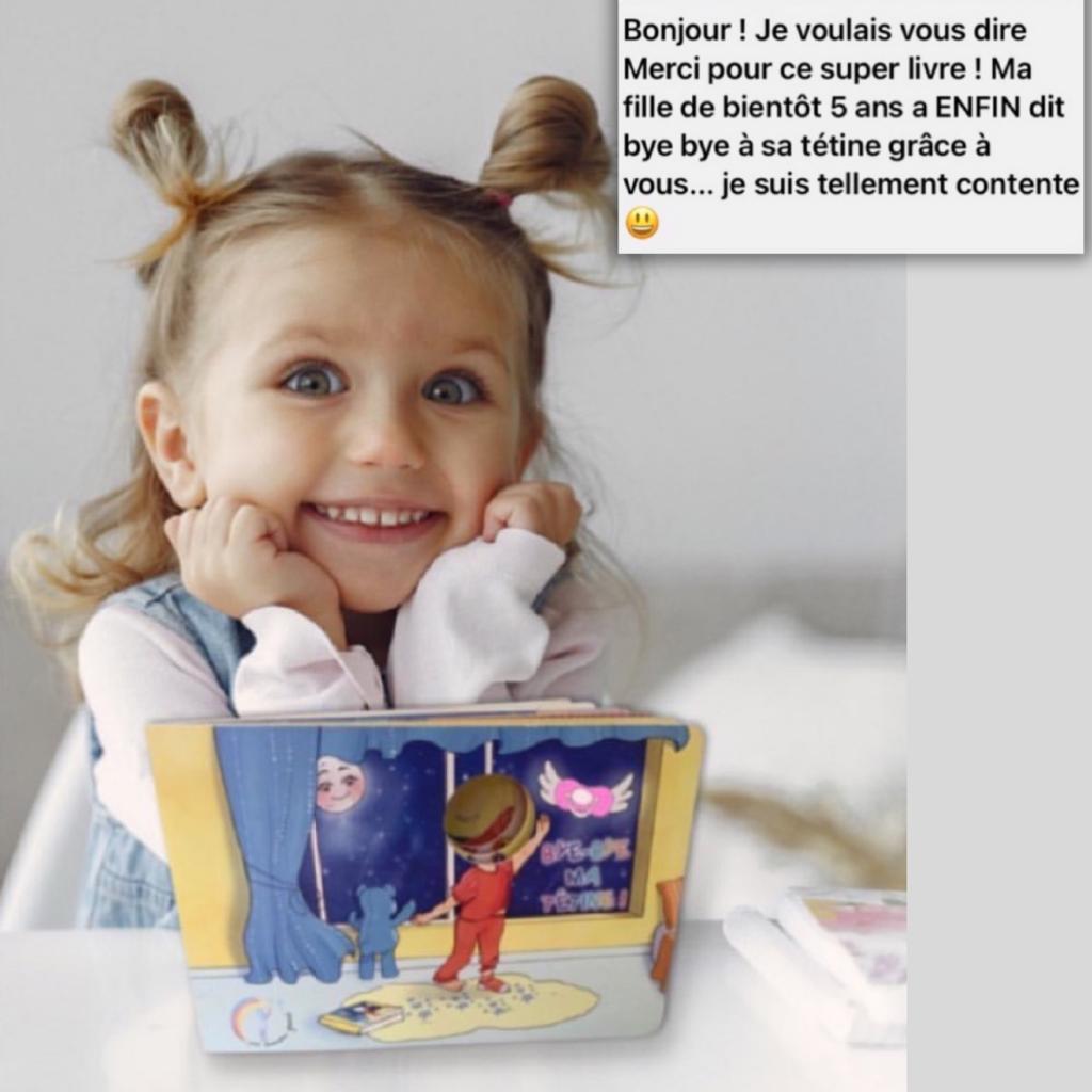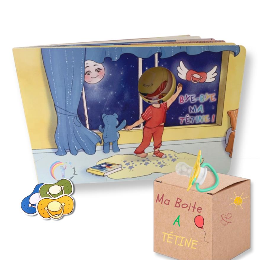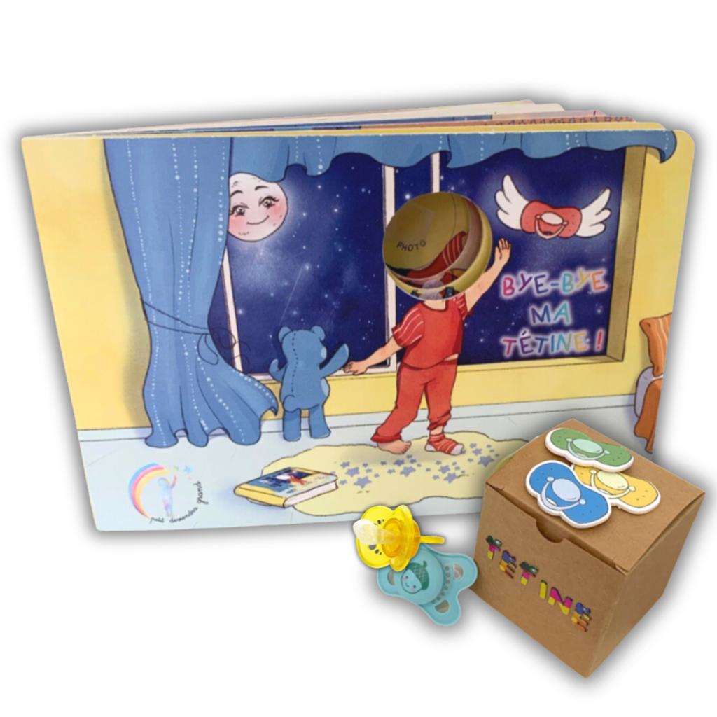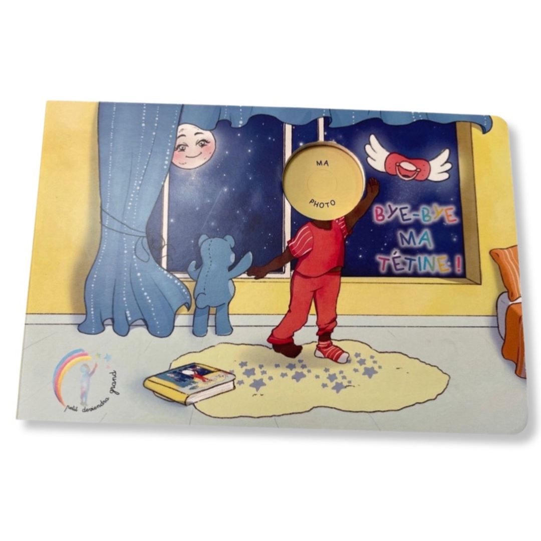 Bye-Bye ma tétine est un livre personnalisé et interactif, pensé pour accompagner les petits en douceur et par le jeu à se séparer de leur précieuse tétine !